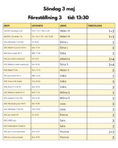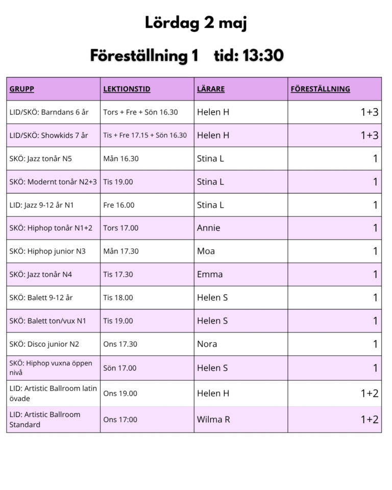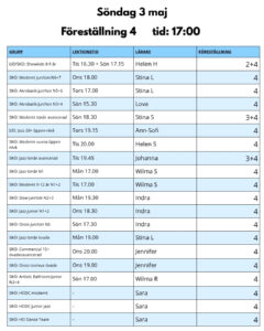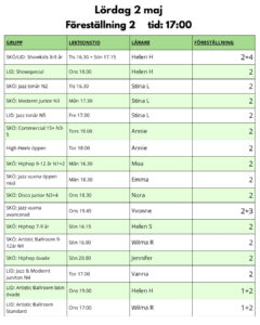 ’Vårshow 2026 föreställning uppdelning